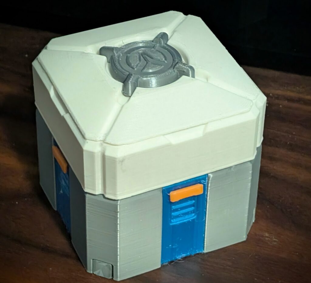 You know these loot boxes in Overwatch? Well someone has been so kind as to have the STL files located here: https://www.thingiverse.com/thing:2979980